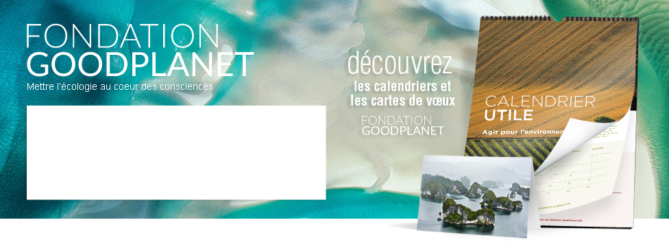 En achetant les calendriers et les cartes de vœux, vous soutenez la Fondation GoodPlanet : 30% du prix de vente est versé à la Fondation présidée par Yann Arthus-Bertrand. La Fondation GoodPlanet s'est fixée pour mission de sensibiliser le public à la protection de l'environnement. Elle convie à un mode de vie plus respectueux de la Terre et de ses habitants.
